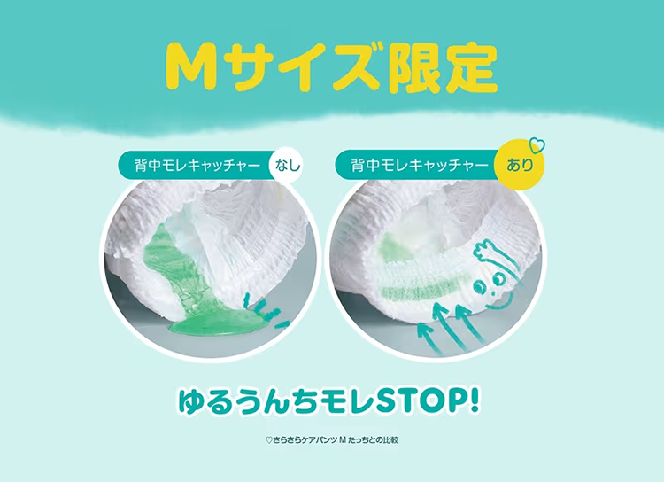 - 柔軟的吸收層可快速分散和吸收尿液,360°全方位防漏,有效應付稀便